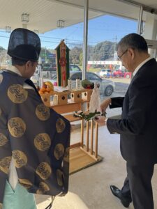 この土地を守護する神様、大地主大神(おおとこぬしのおおかみ)さまをお招きし執り行われました。